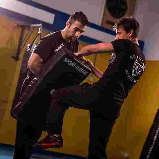 The Sport-Thieme “Curve” punch pad is ideally suited to martial arts training. The looped handles give your training partner optimal support when exercising. You can practise both punching and kicking. The different loops give you the opportunity to hold the punch pad in various positions.